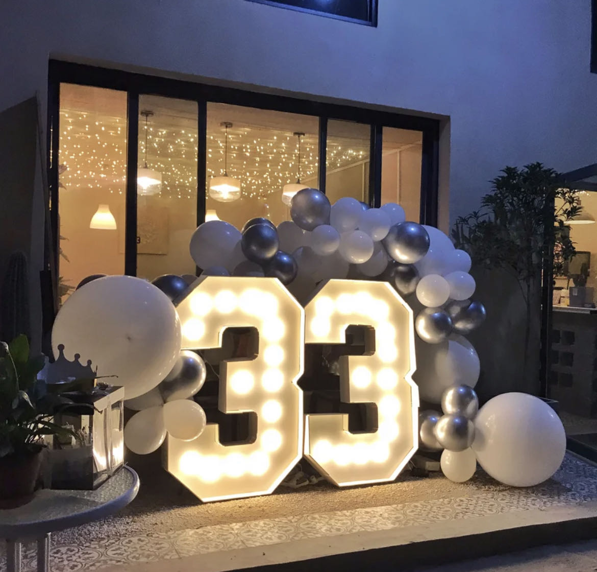 21 years old birthday party decoration with big light number