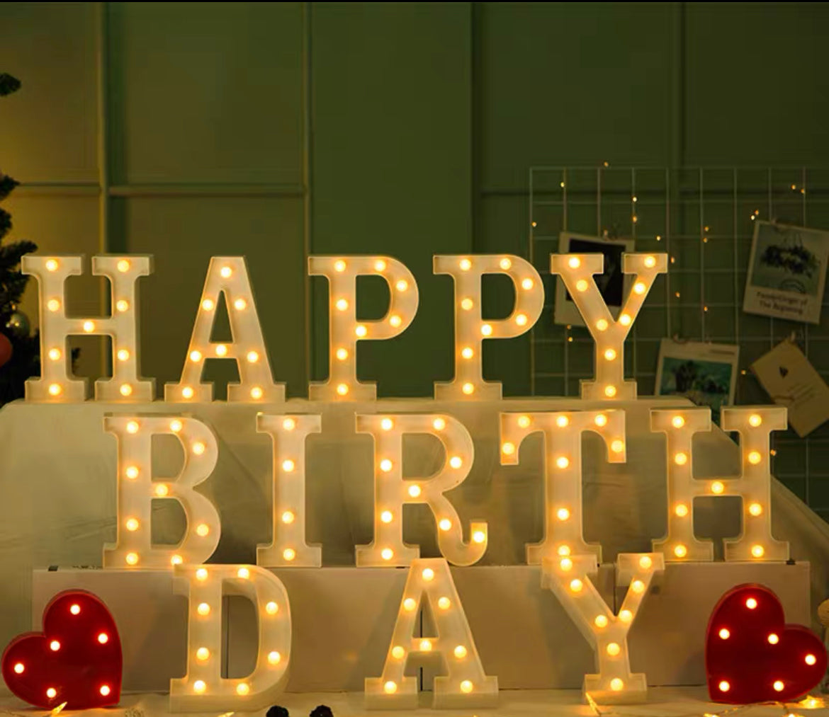 Happy birhtday Light Hire with battery, around 20cm * 25cm each size returning within 2 days need deposits, deposits amount equal to hiring fee