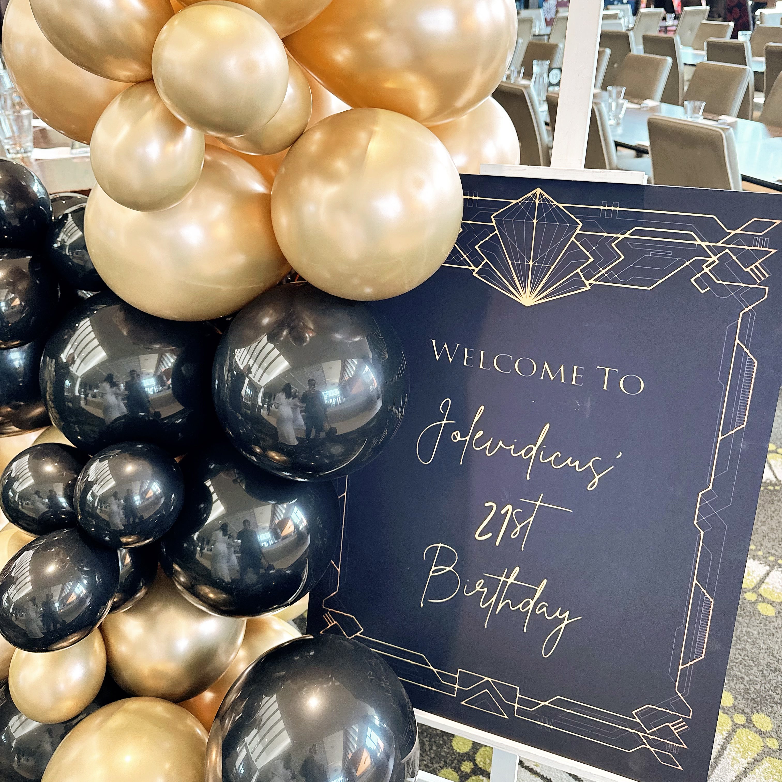 Melbourne Custom Party Decorations with Black & Gold Color Balloon Garland